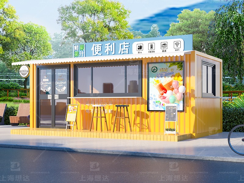 集裝箱可移動(dòng)奶茶果茶店商業(yè)街售賣店案例:果茶店