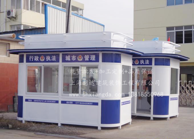 藍(lán)+白是最經(jīng)典的保安顏色,那么她又是用什么制作而成的呢?一般來說保安亭或者是警務(wù)亭都是用鍍鋅板噴漆制造而成的,下面就給大家解析一下保安警務(wù)亭的上色標(biāo)準(zhǔn)。