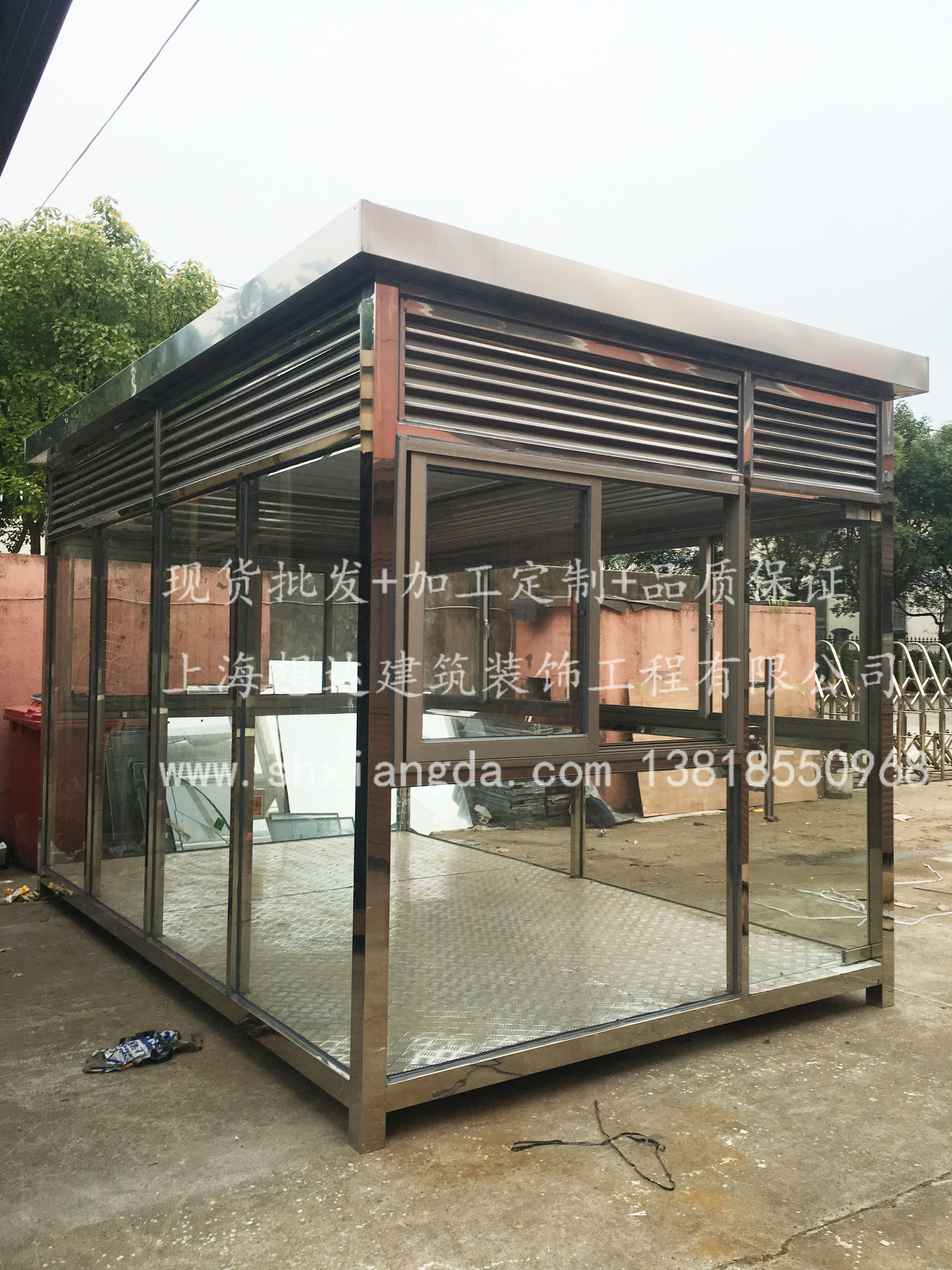 吸煙亭是從上海頒發(fā)禁煙令來火熱暴漲起來的一款新型崗?fù)ぃ话悴捎貌讳P鋼管搭配鋼化玻璃和百葉的簡單造型示眾,360度無死角觀察四周,實(shí)在是吸煙場所之首選。常規(guī)尺寸是2.5*2.2*2.5,不過一般是按照客戶的要求來定制。