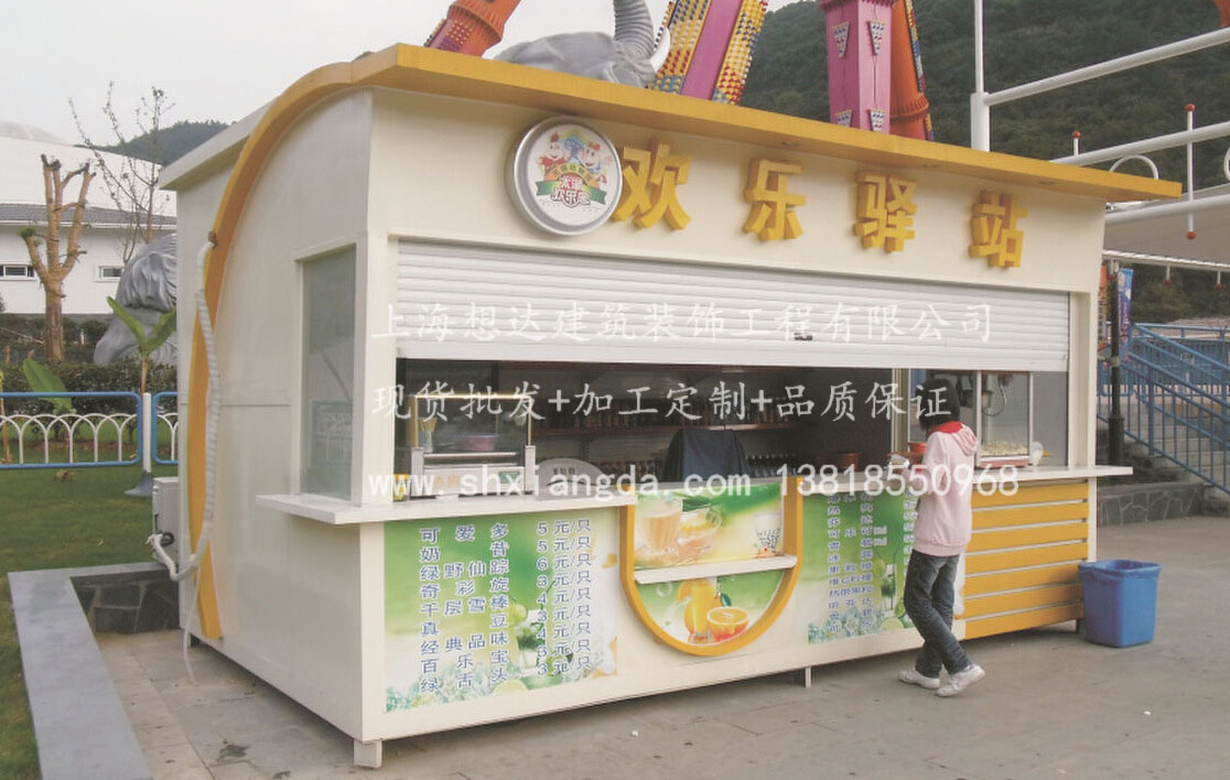 售貨亭是由亭頂、亭柱、還有售貨亭的框架組成的,售貨亭頂部采用鍍鋅鋼板折邊而成,采用獨(dú)特的防水工藝,外表層噴涂汽車漆,龍骨采用100*100鍍鋅方管焊接而成,鋼結(jié)構(gòu)框架,牢固堅(jiān)固,只需要在平時(shí)的使用中,多清掃,保持桌椅干凈,不要使用酸性溶劑清洗表面即可。