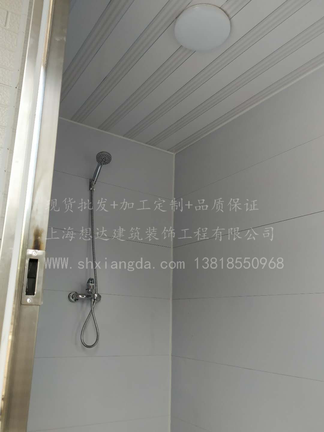 廁所內(nèi)部配置:蹲坑水箱套裝(可選坐便器),鋁合金通風(fēng)百葉,洗手池??蛇x整容鏡,衣帽鉤,置物架。照明系統(tǒng)為豪華吸頂燈,配置開關(guān)。搭配淋浴房,淋浴廁所亮不誤。