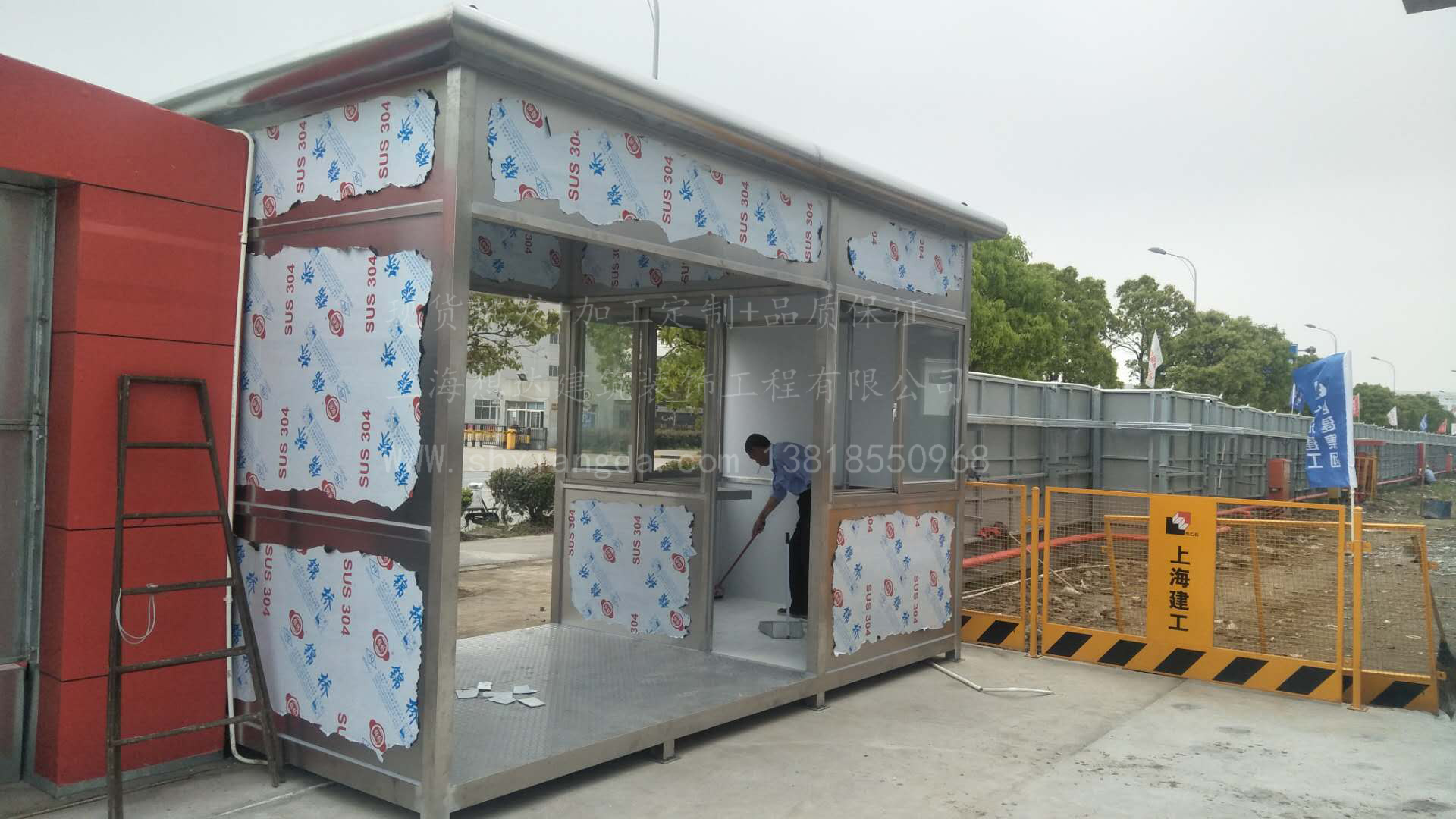 建工通道崗?fù)ひ话悴捎?04不銹鋼整體焊接成型,外墻為80*80不銹鋼管焊接成型,耐腐蝕,防生銹送貨地點(diǎn):上海市建工臨港項(xiàng)目部