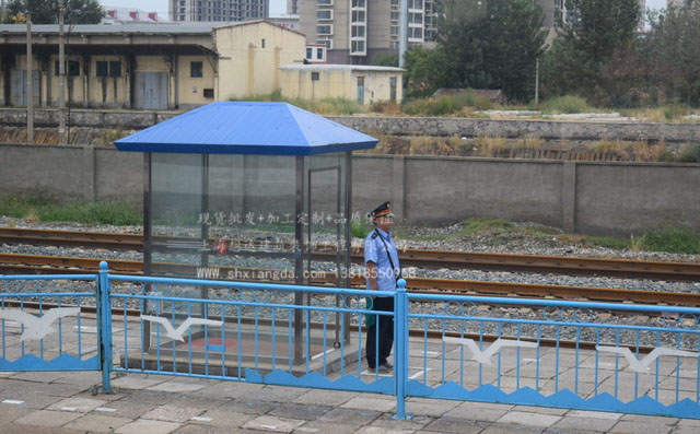 就這樣接發(fā)列車(chē)動(dòng)作,他連續(xù)要干12個(gè)小時(shí),沒(méi)有列車(chē)的時(shí)候,他就會(huì)在崗?fù)?nèi)擋風(fēng)避雨,這一片崗?fù)ひ簿褪撬?2個(gè)小時(shí)的活動(dòng)范圍,除了上廁所他會(huì)抽行車(chē)時(shí)間離開(kāi)一會(huì)兒。