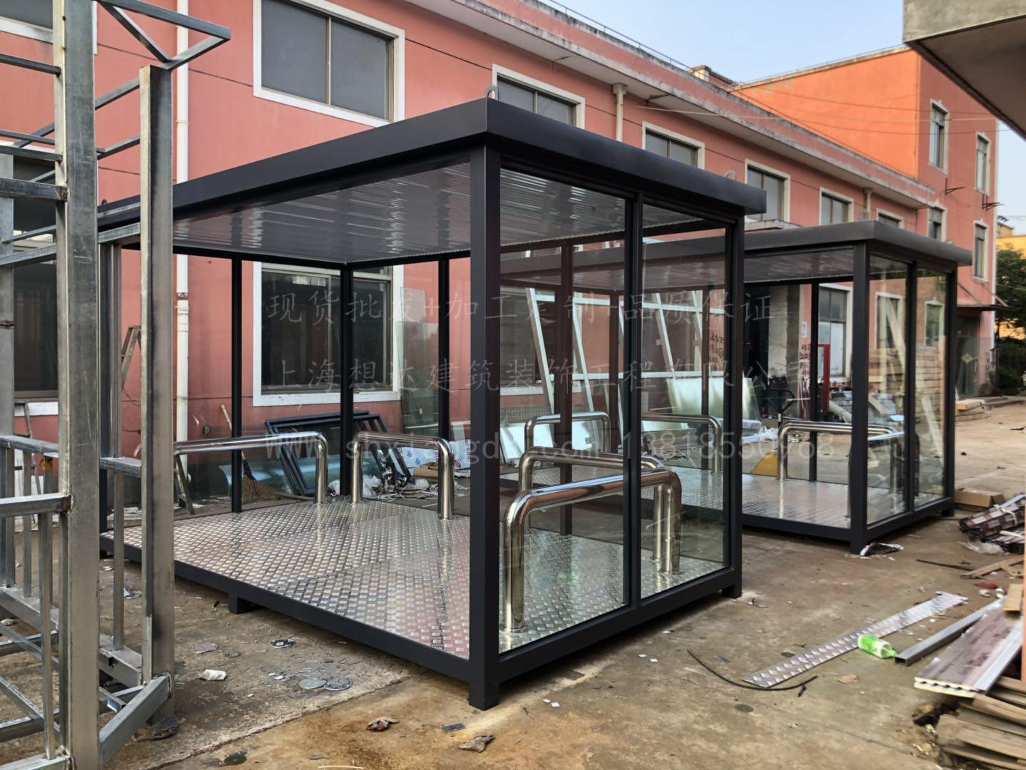 具體材質(zhì): 外墻12mm鋼化玻璃+長城板吊頂